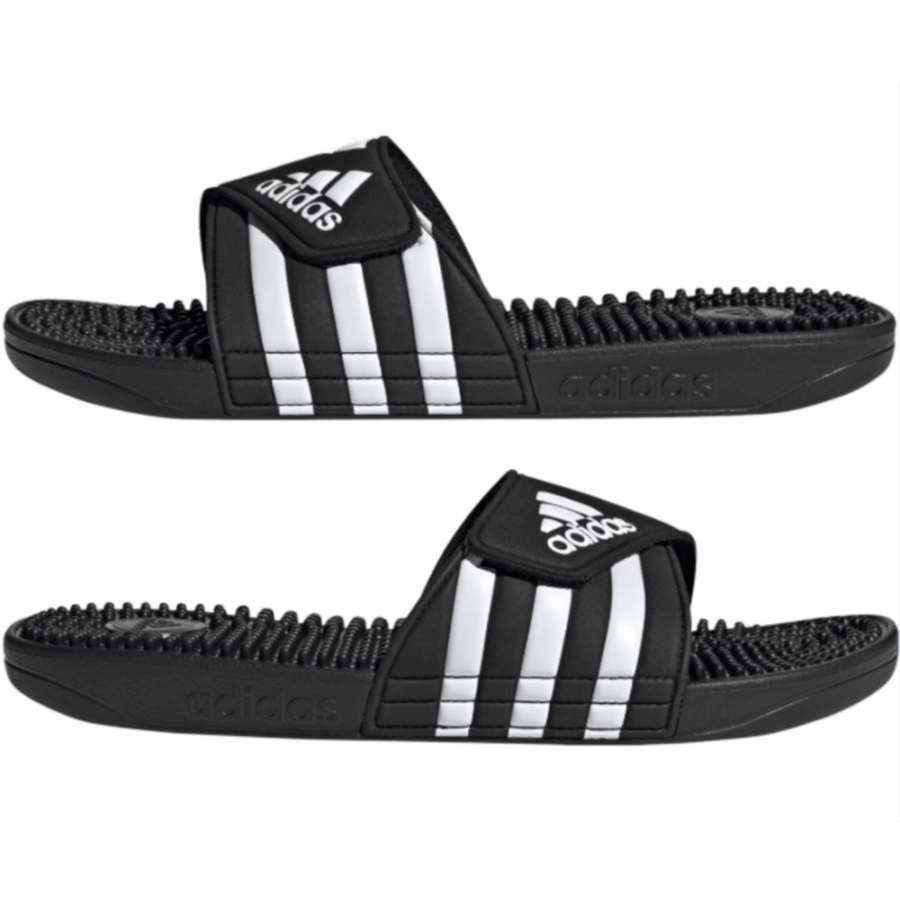 La claquette adidas Adissage noire est équipée d’une semelle intérieure à picots de massage et d’une tige réglable pour un ajustement personnalisé.