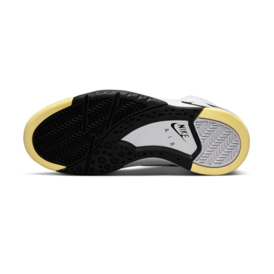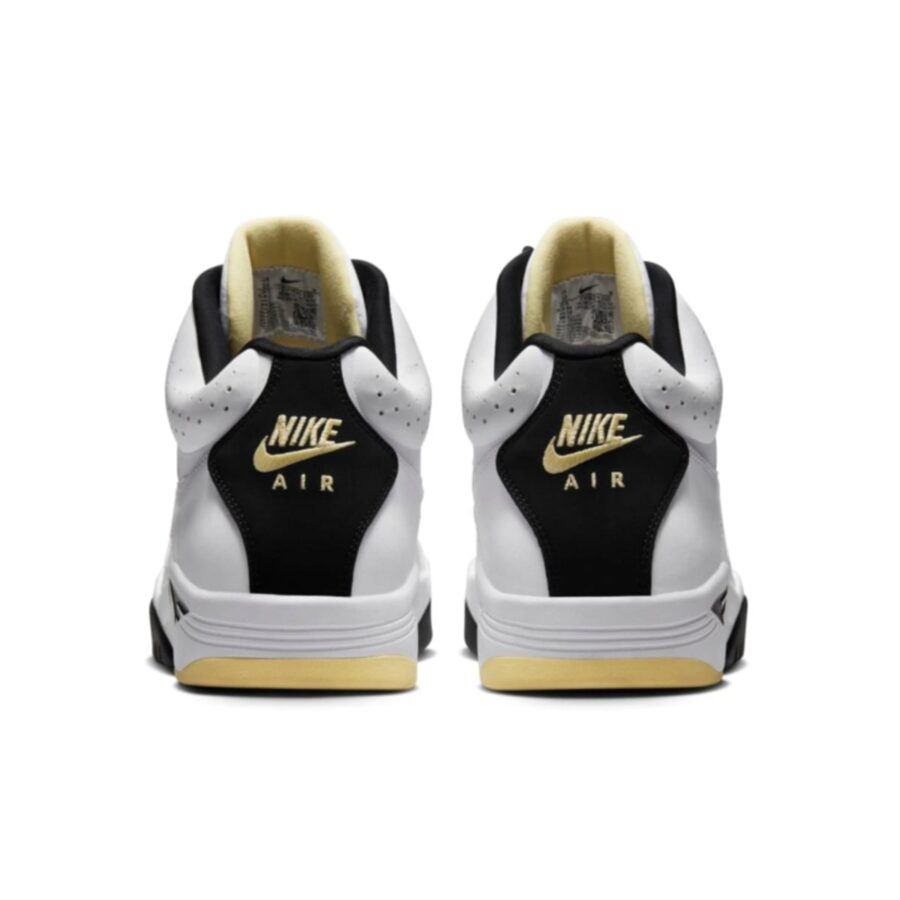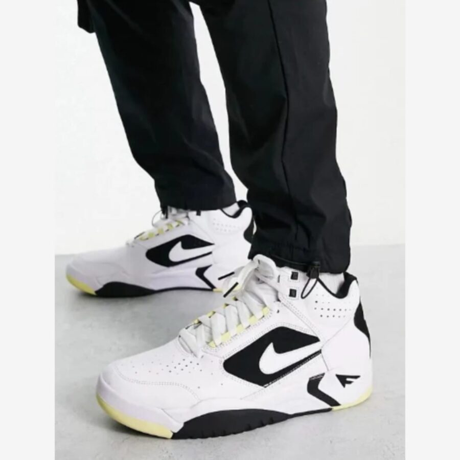 La Nike Air Flight Lite Mid DV0824-100 est une chaussure de sport mi-haute au design inspiré du basketball, dotée d’une tige blanche perforée agrémentée de touches noires et jaunes, qui offre confort et accroche pour un usage quotidien.