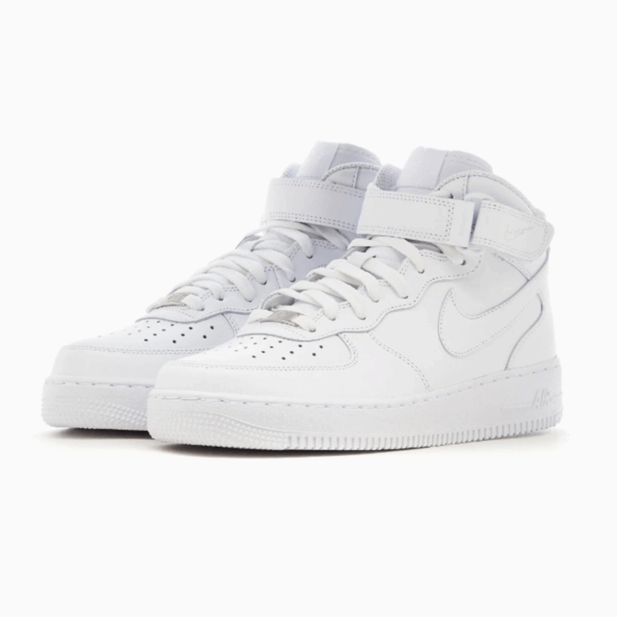La Nike Air Force 1 Mid ’07 Triple White est une sneaker rétro mi-haute en cuir, combinant élégance citadine et aisance. Elle est équipée d’une fermeture à scratch et de lacets, parfaite en tant que basique pour toutes les saisons. Il est conseillé de choisir une demi-pointure en moins, sauf pour les pieds qui sont larges.
