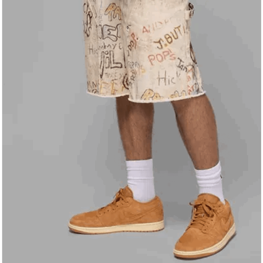 La Air Jordan 1 Low SE « Flax » est une chaussure pour homme inspirée de l’automne, combinant un nubuck beige/marron (« Flax ») avec des touches de Varsity Red. Attendue pour la fin de 2025, elle offre un style confortable grâce à sa semelle crème vieillie qui donne une allure rétro, ainsi qu’un Jumpman et des ailes (Wings) brodés.
