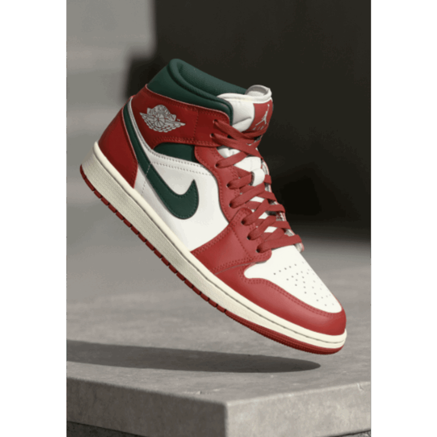 Il s’agit d’une sneaker lifestyle de type semi-haut, prévue pour la fin de l’année 2025. Elle affiche une tige en cuir mêlant du blanc légèrement teinté (Sail), du gris argenté, du rouge terre (Redstone) et du vert sombre (Midnight Green), procurant une apparence automnale, le tout reposant sur une semelle dotée de la technologie Air.