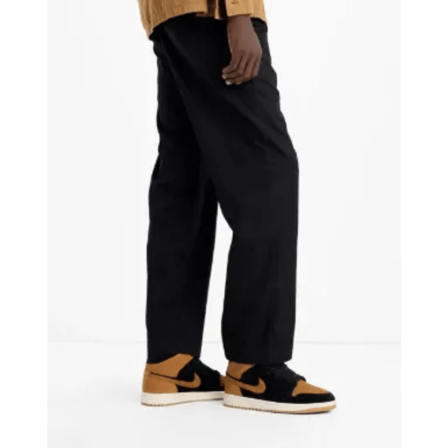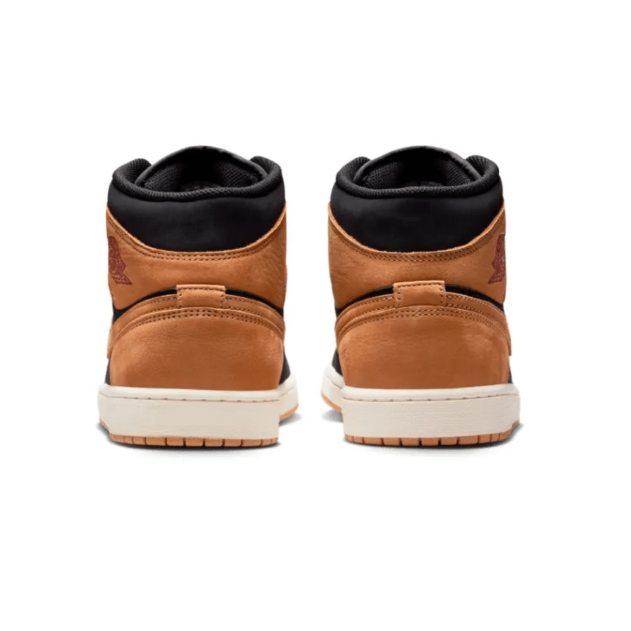 La Air Jordan 1 Mid « Black/Flax » est une chaussure de sport automnale qui associe un cuir noir à des couches en nubuck beige clair (flax) et des touches de rouge « Varsity Red » sur la languette et l’emblème Wings. Cette paire de chaussures présente une semelle intermédiaire de couleur « Sail » (blanc cassé) associée à une semelle extérieure marron, créant un contraste raffiné tout en utilisant des matériaux haut de gamme.