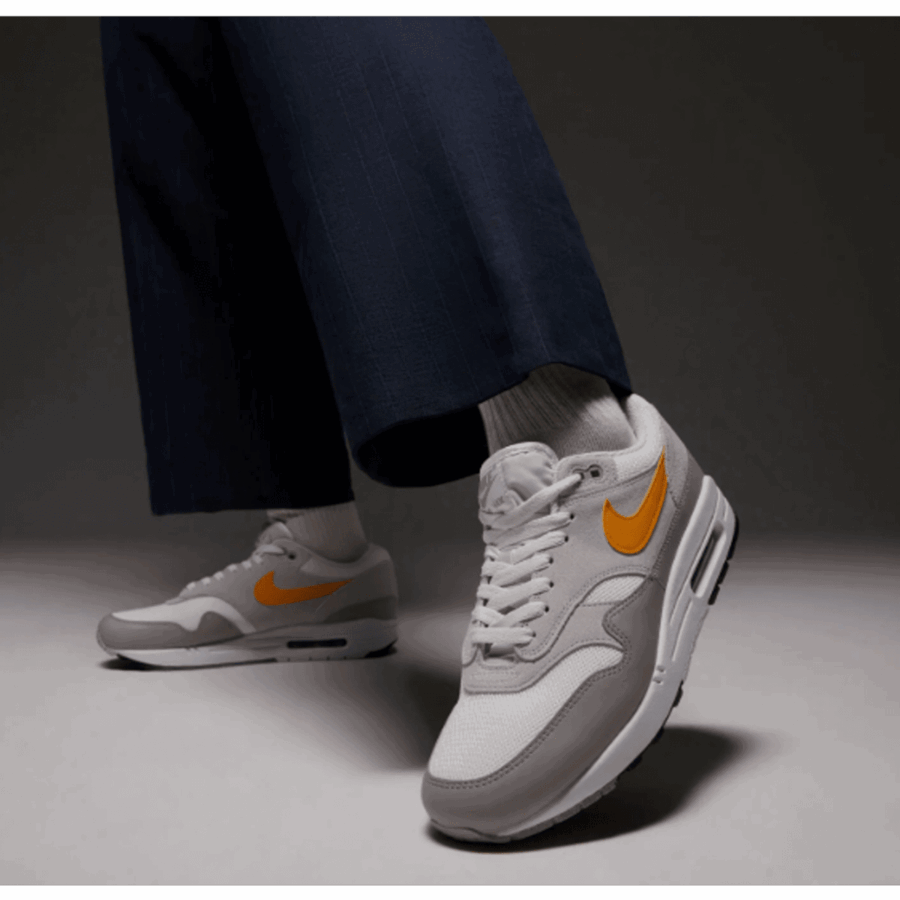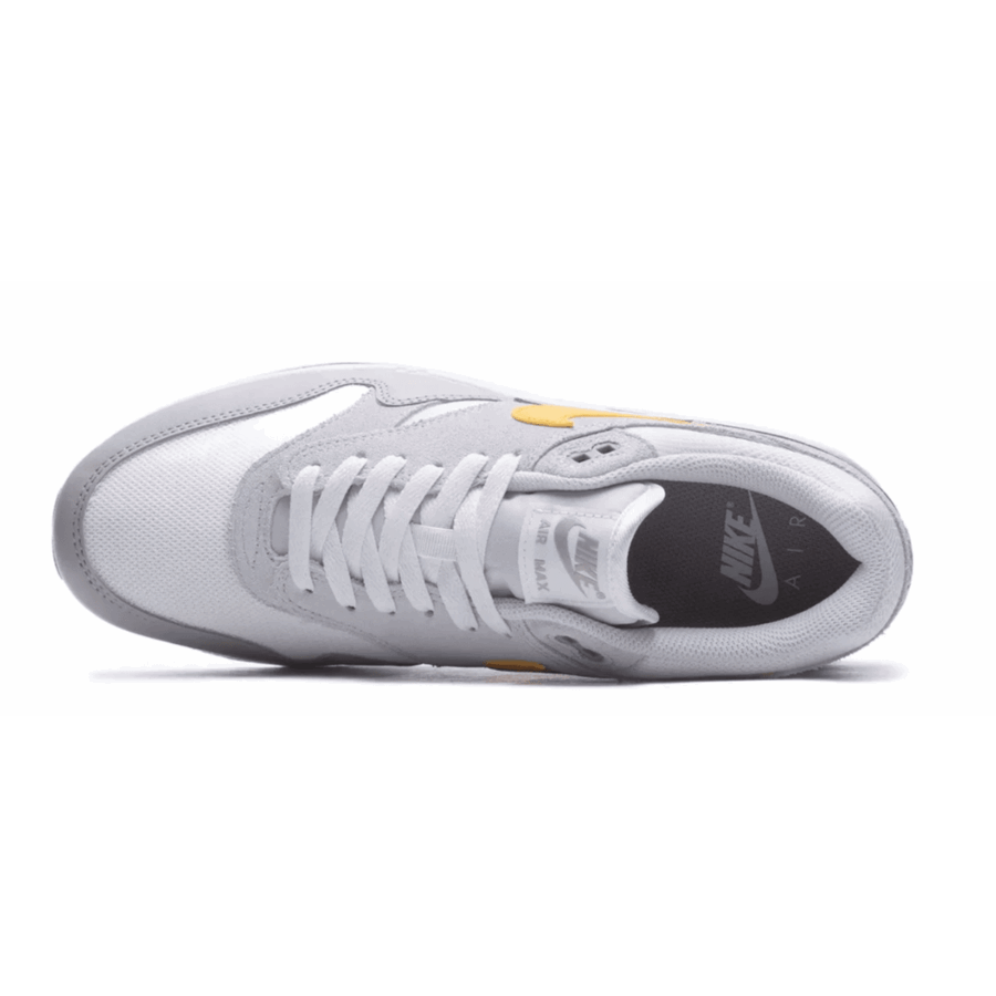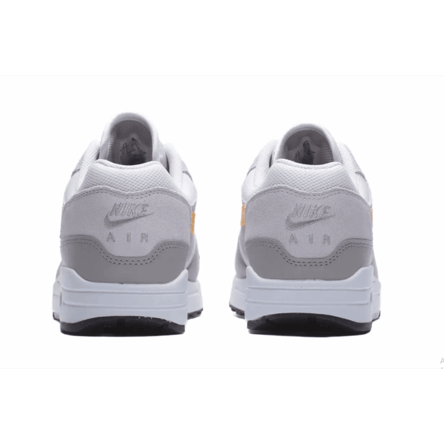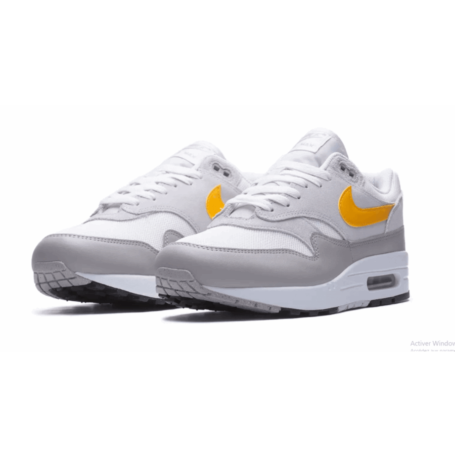 La Nike Air Max 1 Essential en teintes Summit White / University Gold / Vast Grey est une chaussure de sport rétro avec un design iconique. Elle combine mesh blanc , daim gris et cuir artificiel pour une allure traditionnelle, tout en proposant un confort optimal grâce à l’unité Max Air visible et une semelle à reliefs en caoutchouc assurant une traction de longue durée, parfaite pour une utilisation quotidienne.