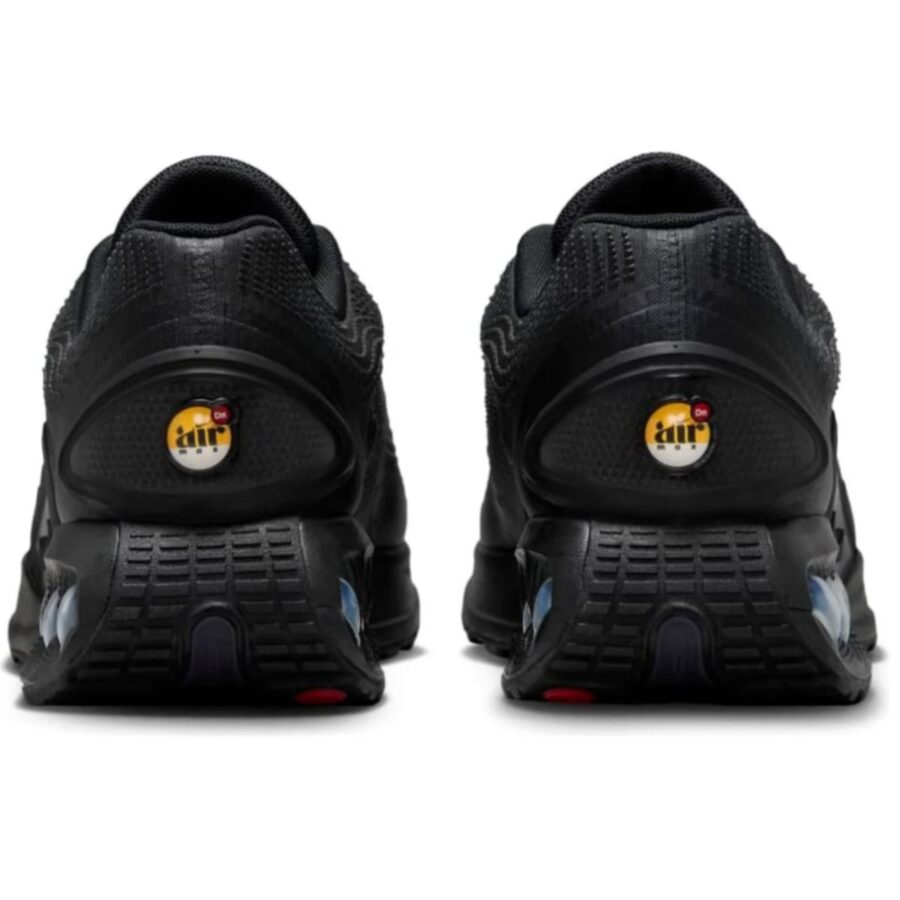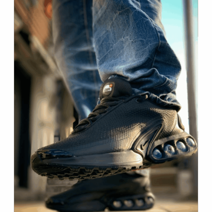 La sneaker Nike Air Max Dn « Triple Black » est une chaussure futuriste entièrement noire avec des touches de gris métallisé. Elle est équipée d’une unité Dynamic Air à quatre cylindres qui offre un amortissement réactif et un confort inégalé. La tige est conçue en tissu multicouche léger et aéré avec des éléments en relief. Avec son design monochrome et contemporain**, elle est parfaite pour un usage journalier tout en offrant une esthétique « Triple Black ».