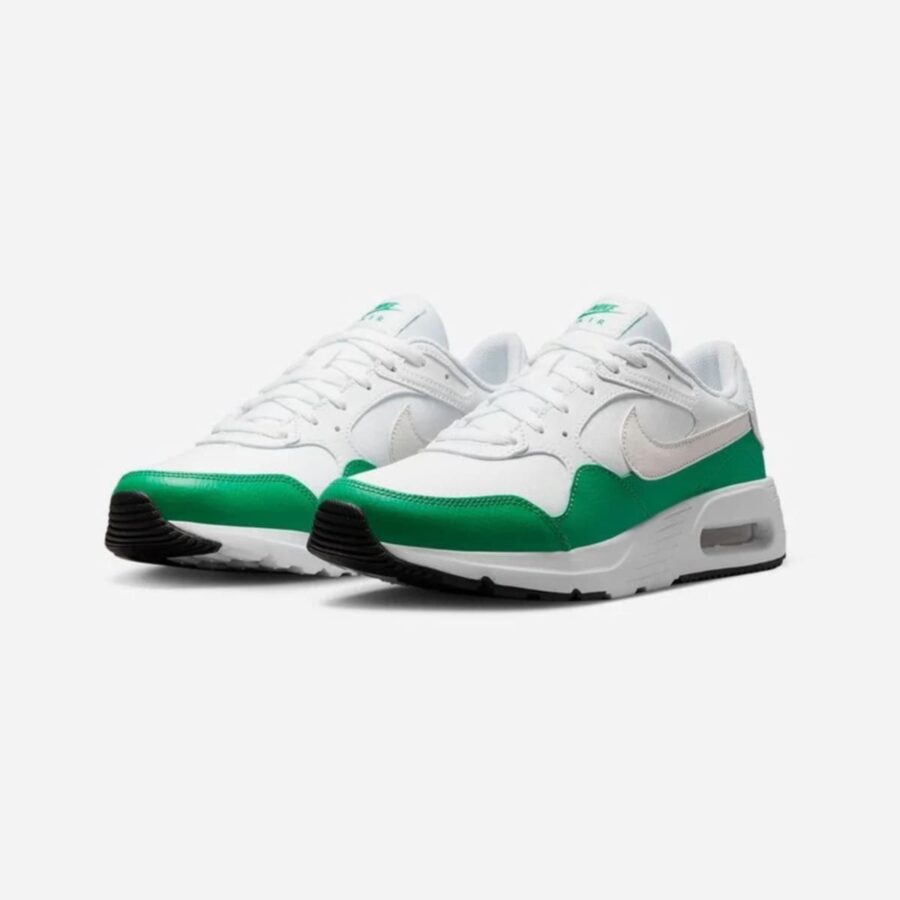La Nike Air Max SC masculine est une chaussure de vie conçue dans un style rétro inspiré de la course, alliant une tige en cuir, tissu et mesh pour une meilleure aération et longévité. Équipée d’une unité Max Air apparente au niveau du talon et d’une semelle intermédiaire en mousse, elle assure un bien-être optimal au jour le jour, déclinée en blanc, vert stade, noir et phantom.