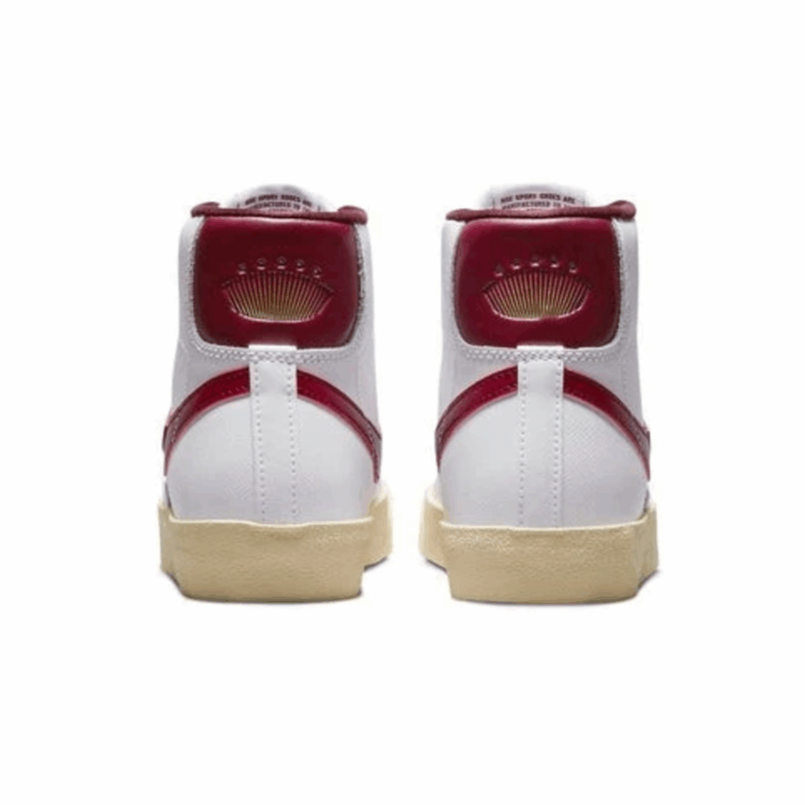 La Nike Blazer Mid ’77 SE DV7003-100 est une chaussure de sport au design rétro basé sur les années 70, se caractérisant par une tige en cuir blanche, des accents rouges distinctifs et une semelle teintée muslin pour un aspect vintage.