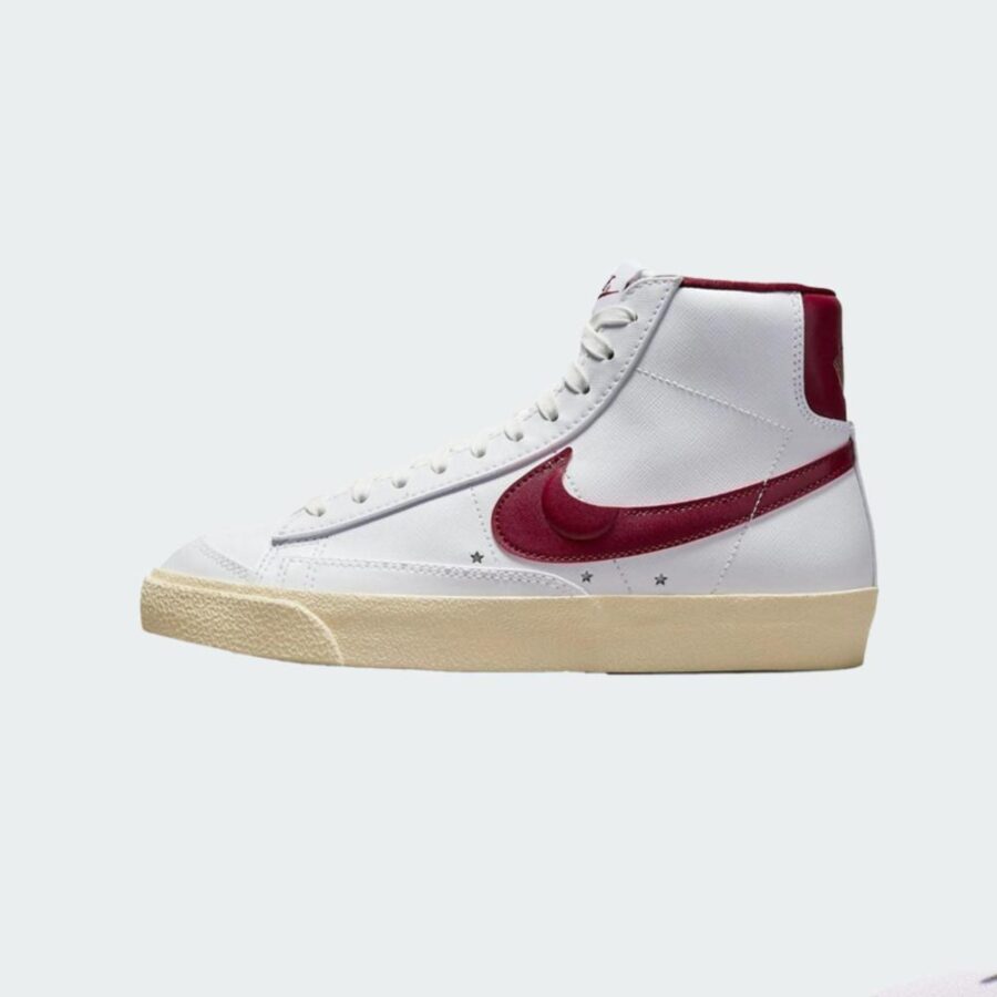 La Nike Blazer Mid ’77 SE DV7003-100 est une chaussure de sport au design rétro basé sur les années 70, se caractérisant par une tige en cuir blanche, des accents rouges distinctifs et une semelle teintée muslin pour un aspect vintage.