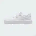 Les baskets Puma Carina Mia pour femme, en teinte PUMA White/PUMA Gold, sont des sneakers raffinées et agréables à porter tirées de l’univers du tennis. Avec leur style blanc accentué de touches dorées, parfois disponible en version mi-haute (Mid), couplé à un système de laçage, ce modèle est parfait pour une utilisation quotidienne et unlook décontracté.