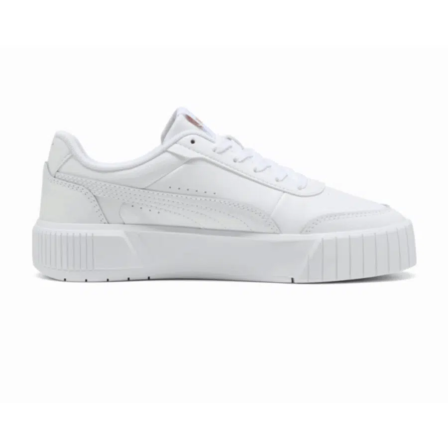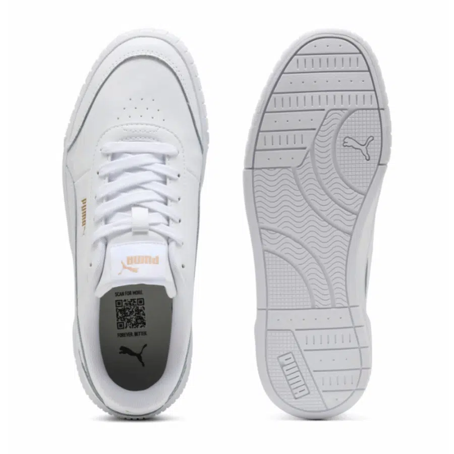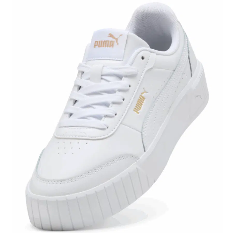 Les baskets Puma Carina Mia pour femme, en teinte PUMA White/PUMA Gold, sont des sneakers raffinées et agréables à porter tirées de l’univers du tennis. Avec leur style blanc accentué de touches dorées, parfois disponible en version mi-haute (Mid), couplé à un système de laçage, ce modèle est parfait pour une utilisation quotidienne et unlook décontracté.