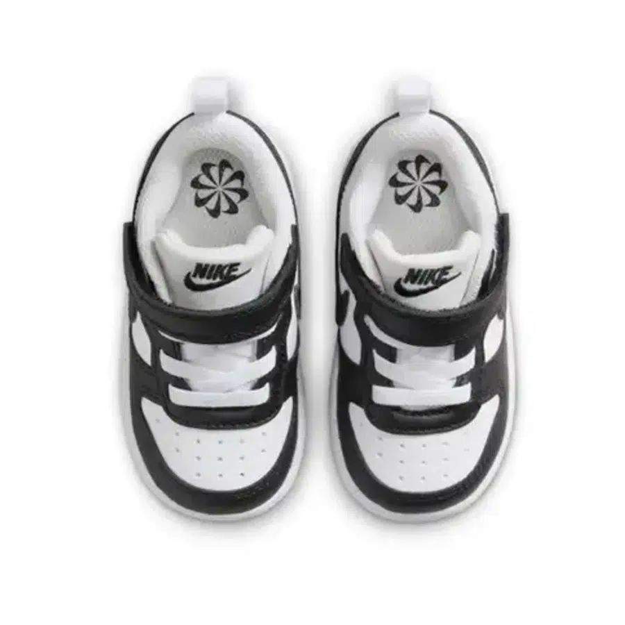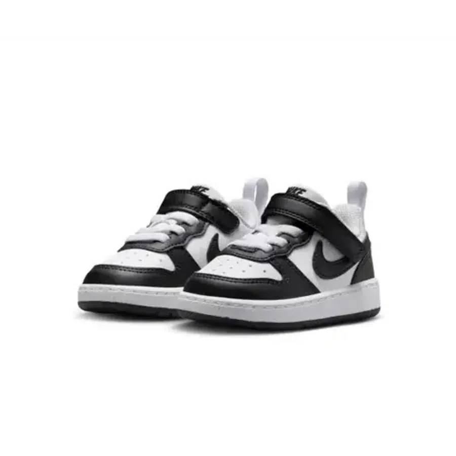 Une paire de chaussures pour bébé ou petit enfant (TD – Toddler), alliant un design traditionnel blanc et noir (White/Black) à des matières durables. Fabriquée à partir de matériaux recyclés, ce produit assure une robustesse supérieure, une pointe remodelée pour un mouvement libre et une semelle en cuvette stable.