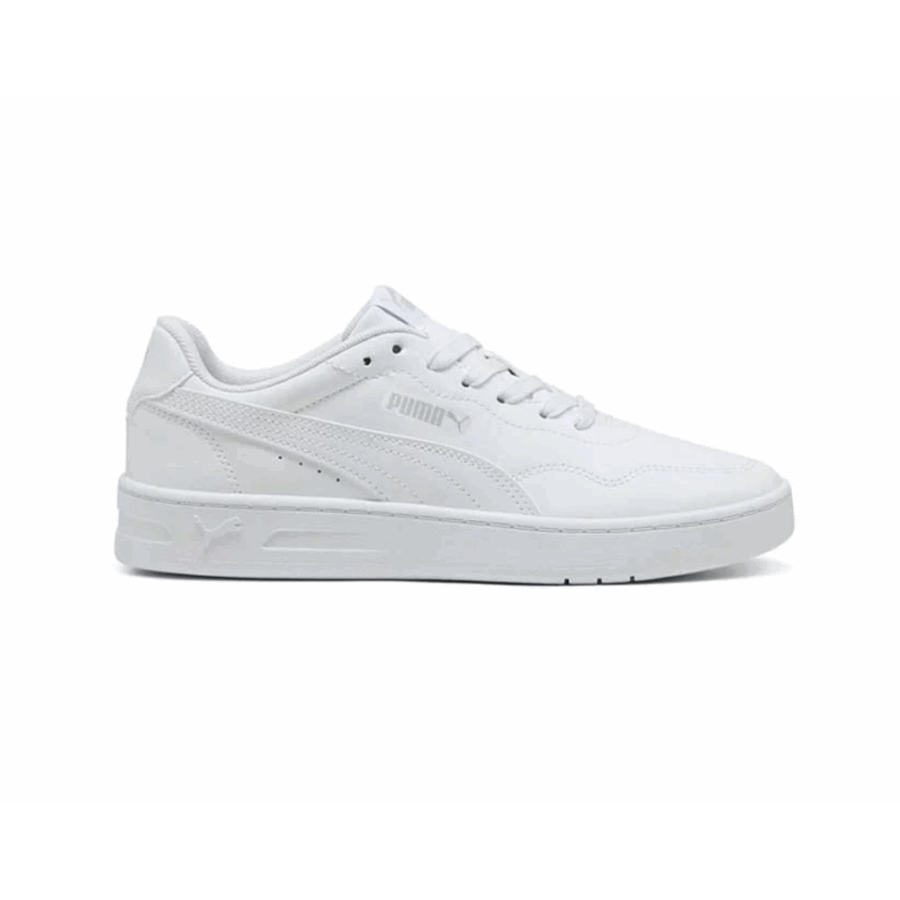 Le modèle Puma Court Lally est une chaussure de sport féminine en teinte Blanc/Cool Light Grey, à la fois polyvalente et classique. Elle est dotée d’une tige en cuir artificiel, d’une doublure en tissu, d’une semelle en gomme et d’une semelle interne SOFTFOAM pour un confort optimal. Fabriquée de façon durable, elle comprend au minimum 30 % de matières recyclées dans la tige et 10 % dans la semelle , proposant un **style raffiné tout en préservant l’environnement .