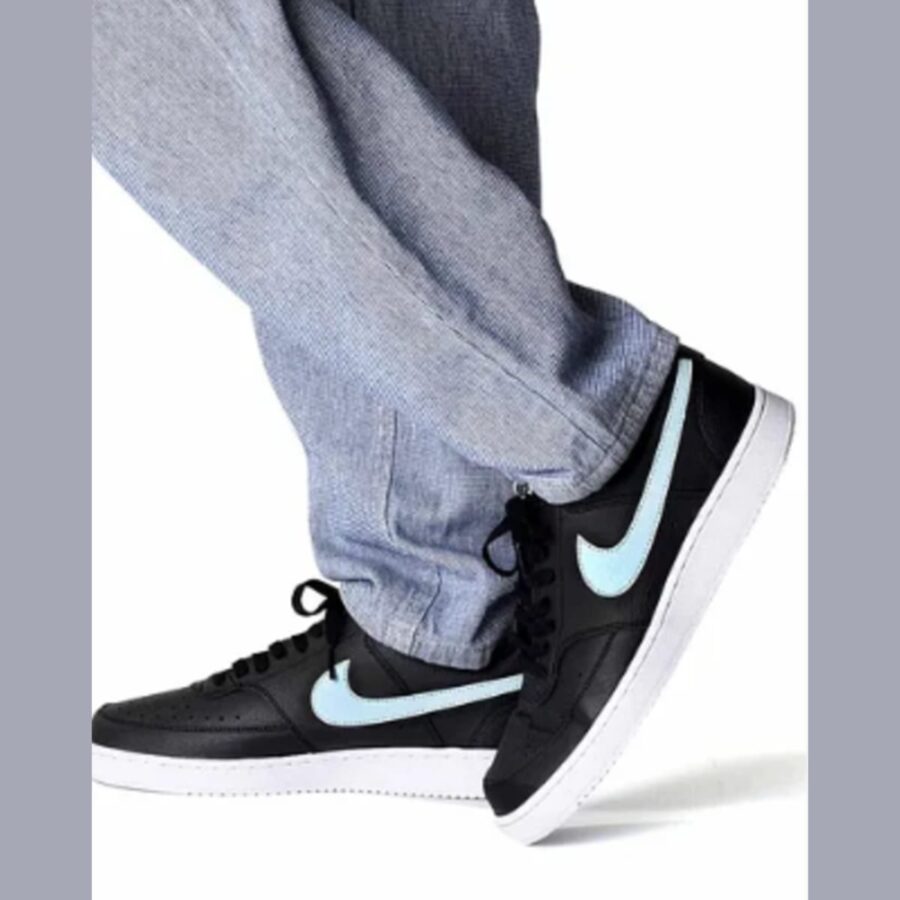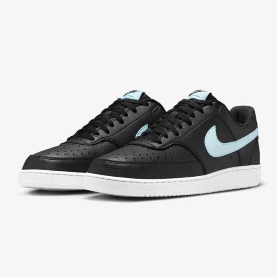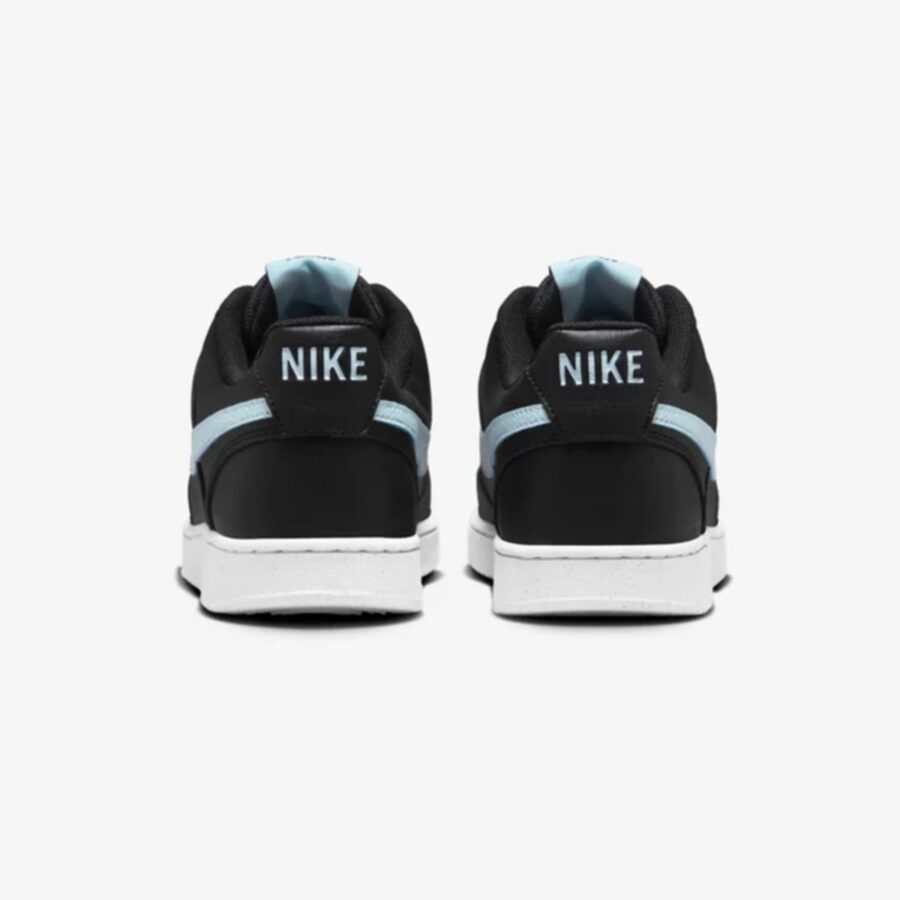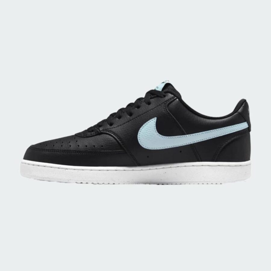 La Nike Court Vision Low Next Nature pour homme est une chaussure de sport décontractée inspirée du style rétro des années 80, généralement disponible en noir, blanc et bleu glacier. Elle est écologique et fabriquée avec au moins 20% de matériaux recyclés, se démarquant par le logo Nike Sunburst (NN). Avec son col rembourré bas et sa tige lisse dotée de superpositions cousues, il allie confort et élégance.