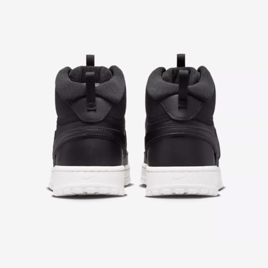 Nike Court Vision Mid Winter est une déclinaison hivernale et à tige moyenne (mid-top) de la Court Vision, adaptée aux températures basses grâce à l’utilisation de matières plus isolantes (cuir, tissu doublé), un col rembourré et des éléments inspirés des chaussures montantes, alliant accroche et look rétro-basket. Il s’agit d’une chaussure noire multifonctionnelle, dotée d’une semelle en caoutchouc résistant et de passants métalliques pour un style robuste approprié à la saison hivernale.