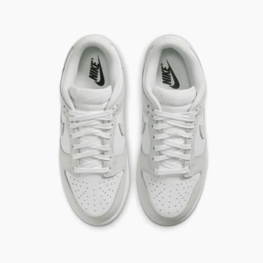 La sneaker pour femmes Nike Dunk Low WMNS « Photon Dust » présente un design discret et polyvalent, associant une tige en cuir blanc à des inserts gris pâle. Avec une semelle en caoutchouc à deux couleurs et des éléments typiques de Nike, elle combine confort et allure citadine, parfaite pour un port quotidien.