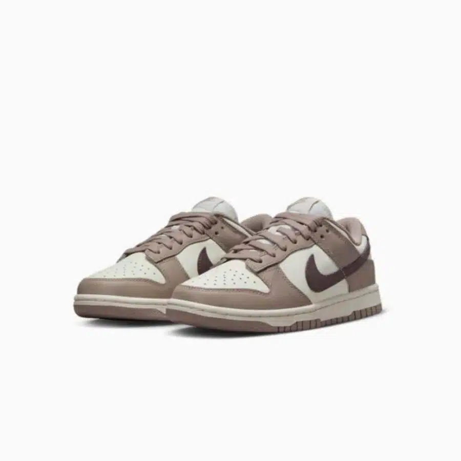 La Nike Dunk Low Diffused Taupe (femme) a été introduite en même temps que diverses versions de la Dunk Low aux coloris discrets, y compris Hemp Sail et Cacao Wow. Elle honore les silhouettes iconiques des baskets Nike des années 80 tout en employant des matières haut de gamme.