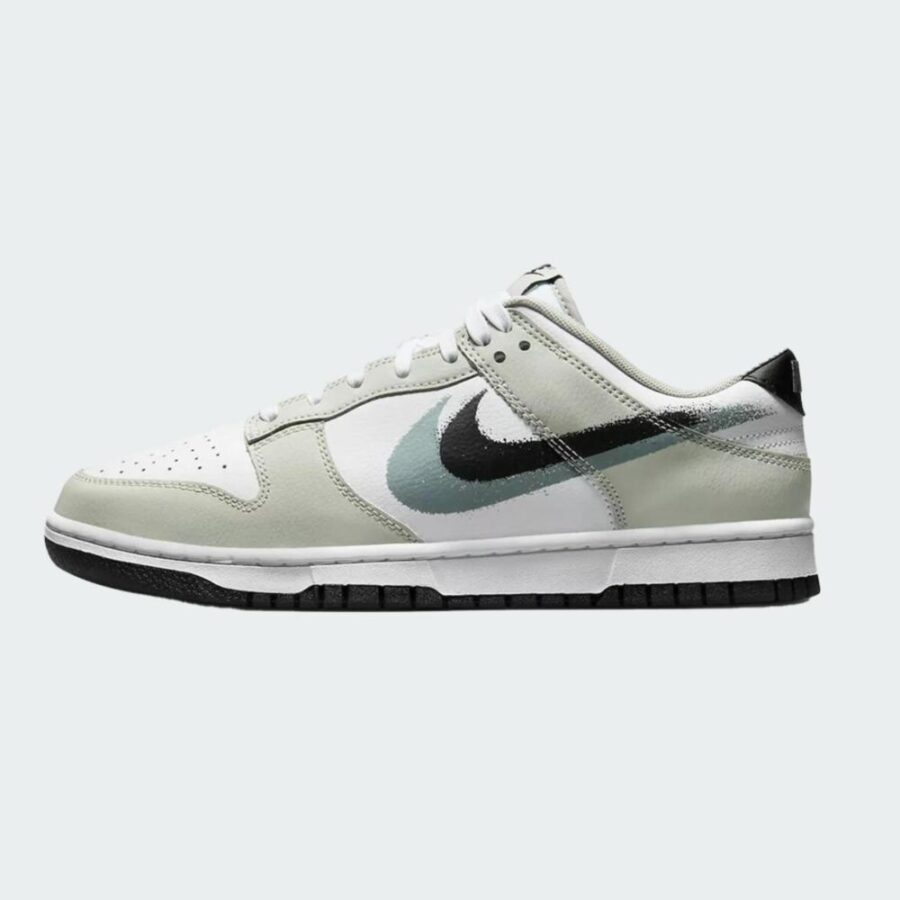 La Nike Dunk Low Stencil Swoosh met en avant un logo double avec une apparence de peinture en aérosol.
