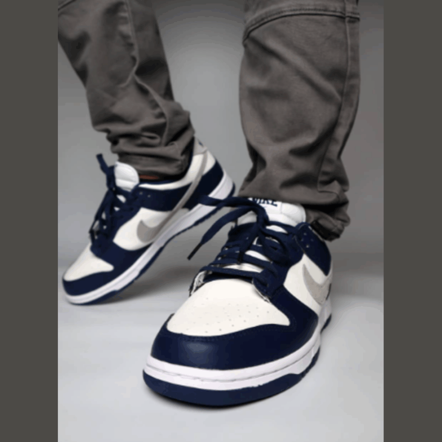 La sneaker emblématique de la culture, connue sous le nom de Nike Dunk Low Summit White Midnight Navy, a été conçue par Peter Moore.