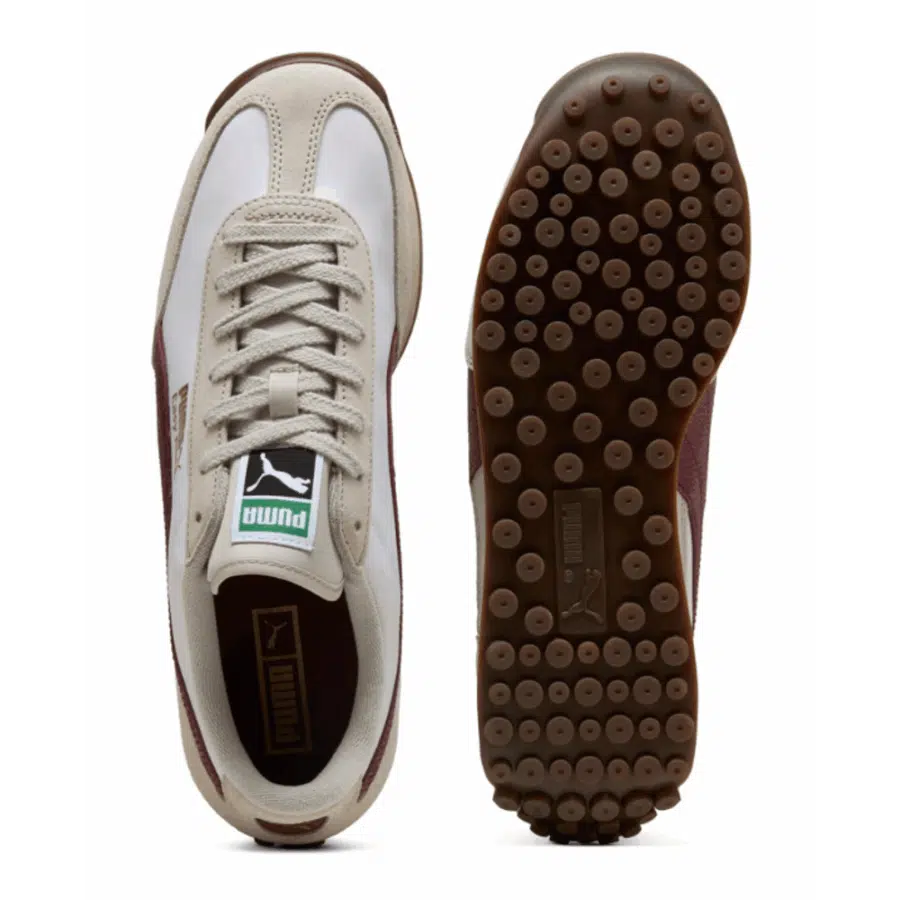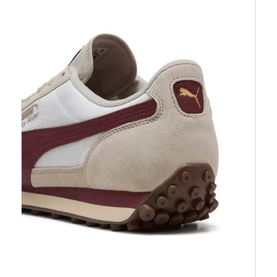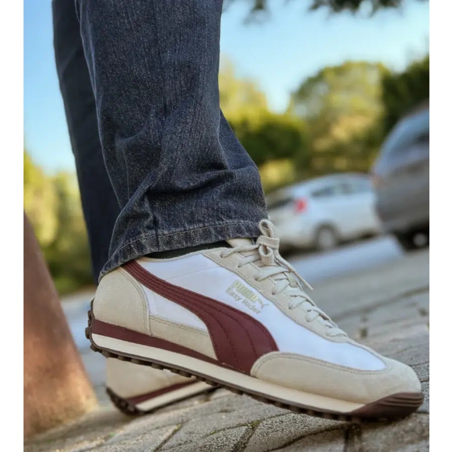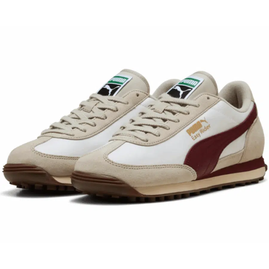 La Easy Rider Vintage est une chaussure de sport unisexe rétro s’inspirant des modèles de course des années 70. Elle combine une tige en nylon et daim dans des nuances de blanc doux et rouge rubis, une semelle intermédiaire légère en EVA, ainsi qu’une semelle extérieure en caoutchouc qui assure une bonne adhérence. Avec son design élancé et sa touche rétro, elle propose une apparence décontractée parfaite pour un port quotidien.