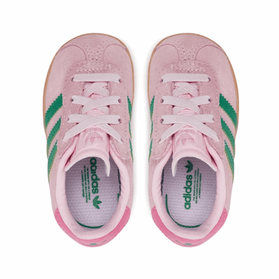 La adidas Gazelle CF EL I est une chaussure de sport pour enfant rose au design rétro emblématique. Elle dispose d’une tige en suède ornée de bandes distinctes et de lacets élastiques pratiques à mettre. Légère et confortable, elle convient parfaitement aux enfants pour une utilisation quotidienne.