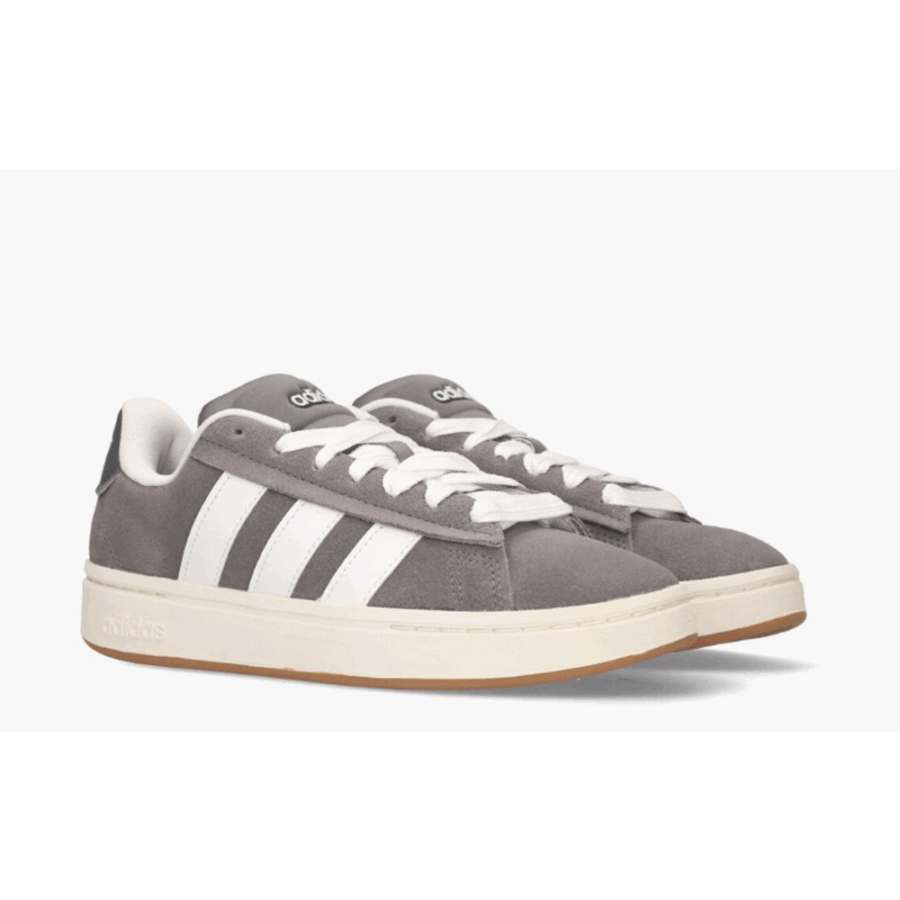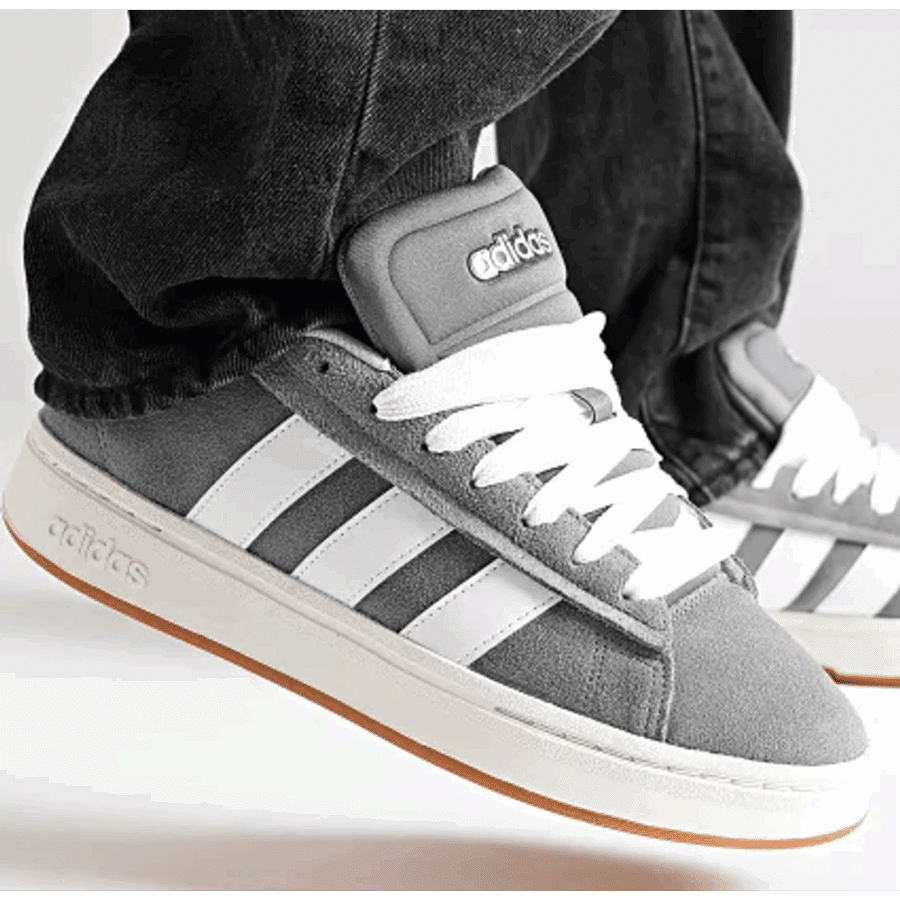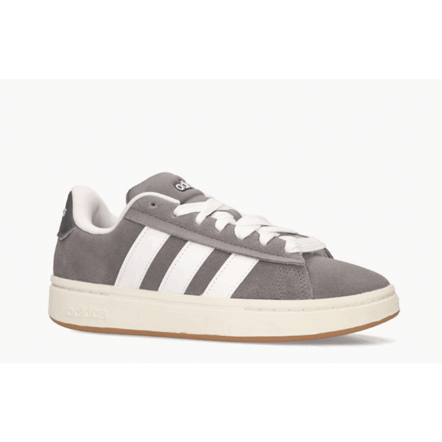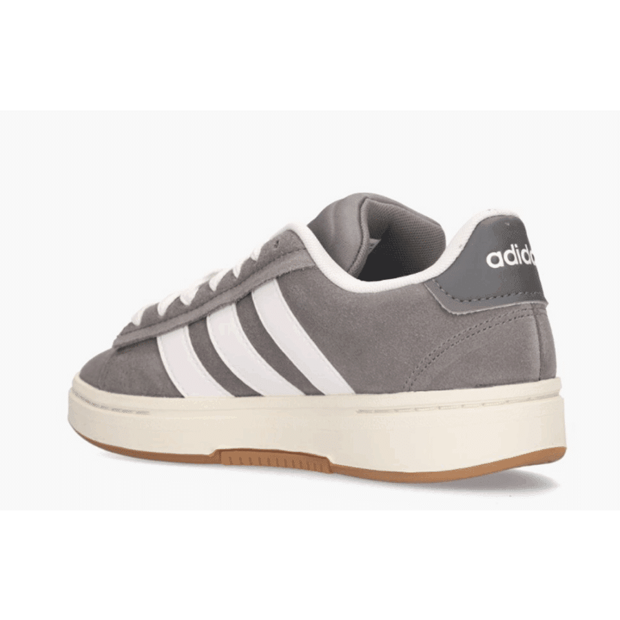 Chaussures masculines au style « sport chic » contemporain, gris sombre (Grey Four/Footwear White), combinant une tige en cuir authentique (ou en matière synthétique selon les informations) à des éléments iconiques. Elle est équipée d’une semelle intermédiaire Cloudfoam pour un amortissement idéal et d’une semelle externe en caoutchouc traditionnel, procurant confort et stabilité au jour le jour.