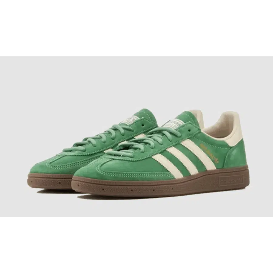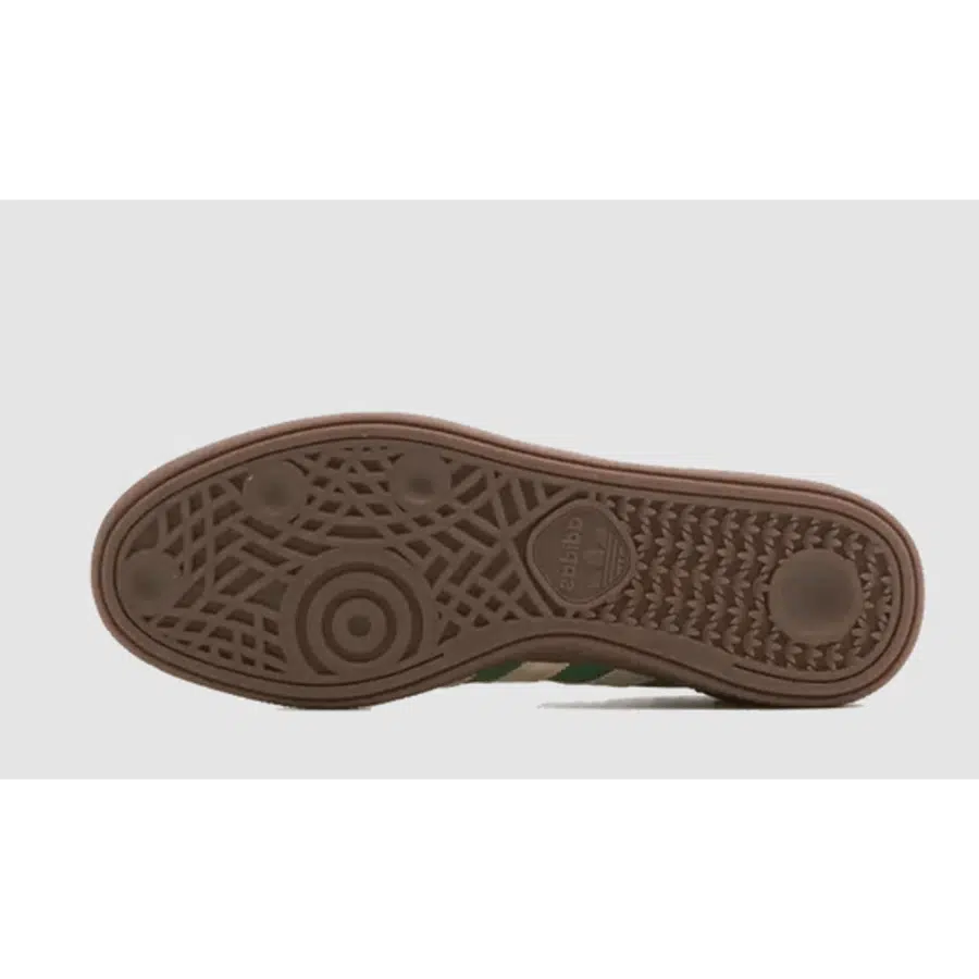 Sneakers classiques à allure vintage, originellement destinées aux activités en intérieur dans les années 70. Ce modèle est caractérisé par sa teinte vert pré (Preloved Green) avec des touches de blanc crème (Cream White), une partie supérieure en matériau synthétique et daim, ainsi qu’une semelle extérieure en caoutchouc gomme pour une accroche optimale.