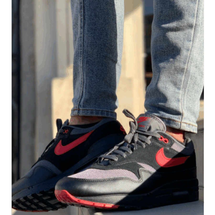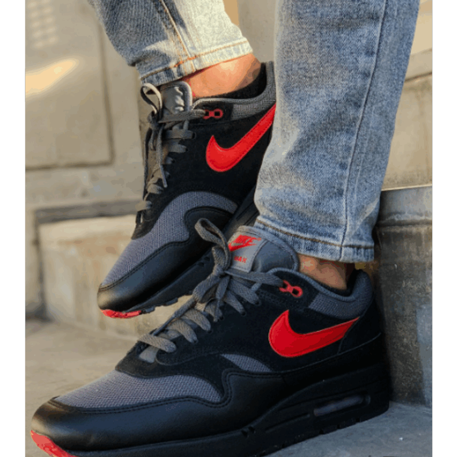 La Nike Air Max 1 Essential « Black/University Red/Iron Grey » est une chaussure de sport masculine au design emblématique et vintage associant cuir, mesh et matériaux durables. Elle dispose d’une unité Air visible dans la semelle pour un amorti agréable et d’une semelle waffle pour une adhérence certaine, alliant élégance et confort pour une utilisation quotidienne.