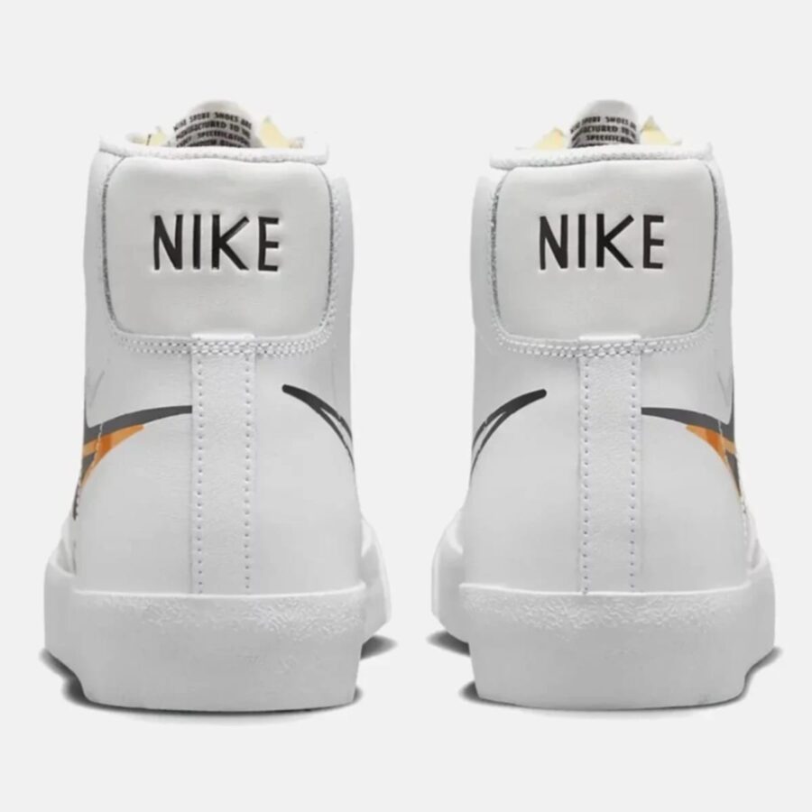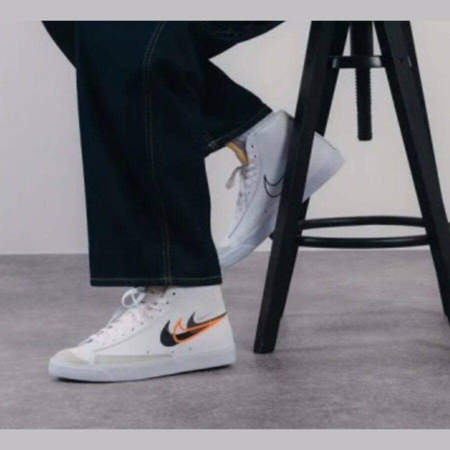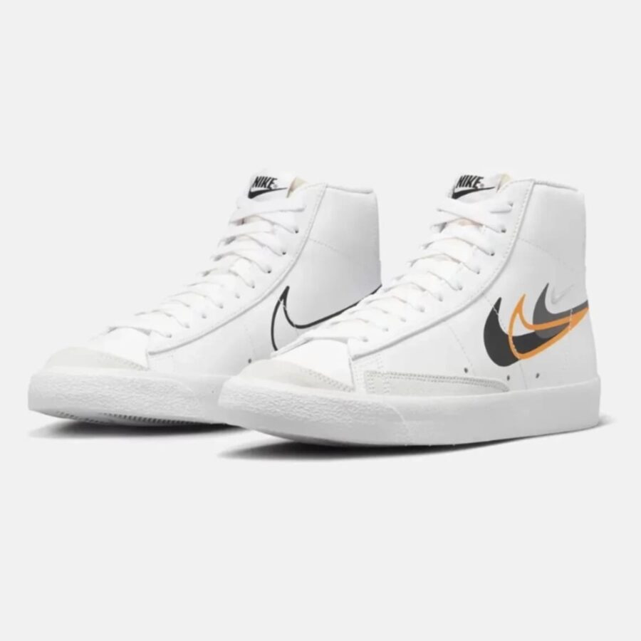 La Nike Blazer Mid ’77 Multi-Swoosh est une chaussure de sport vintage inspirée du basketball, avec un style traditionnel et raffiné. Fabriquée en cuir pour un confort optimal et une finition impeccable, elle est disponible en teinte Blanc/Noir/Mandarine Brillante. Lancé en juillet 2023, ce modèle prisé peut être trouvé dans des magasins spécialisés et sur diverses plateformes de revente.