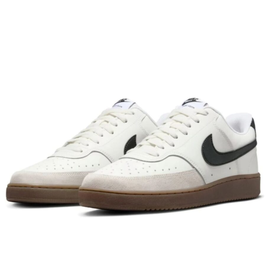 La Nike Court Vision Low (code FQ8075-133) est une chaussure de style décontracté pour homme, présentant une palette de couleurs Sail/Light Orewood Brown/White/Black (voile, brun clair, blanc, noir). Destinée à un usage quotidien, elle combine un design traditionnel inspiré du basketball avec des matériaux à la fois légers et robustes.