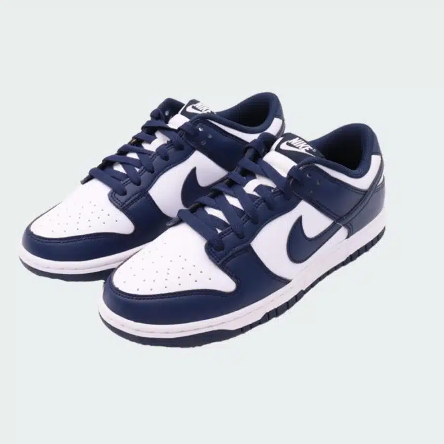 La Nike Dunk Low White Midnight Navy est une Dunk Low à deux teintes qui arbore une combinaison de couleurs classique alliant le bleu nuit et le blanc pur.