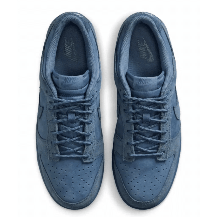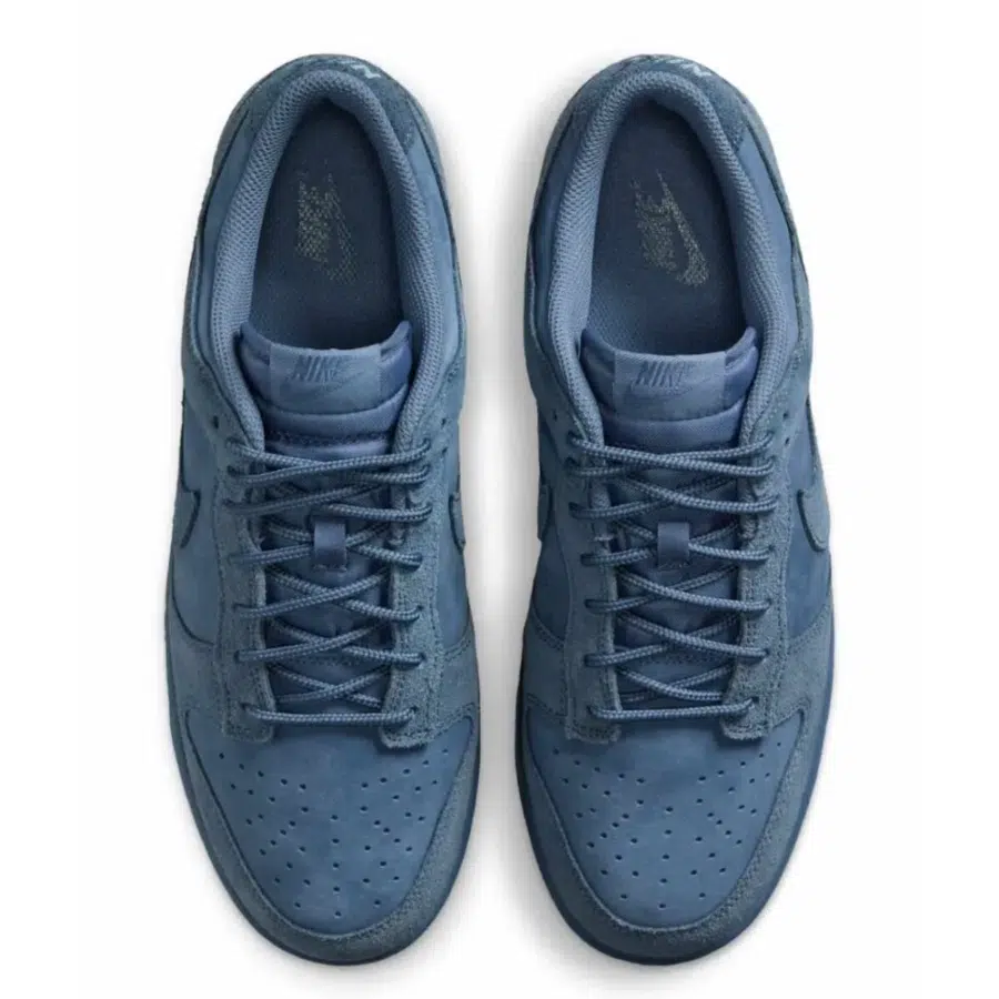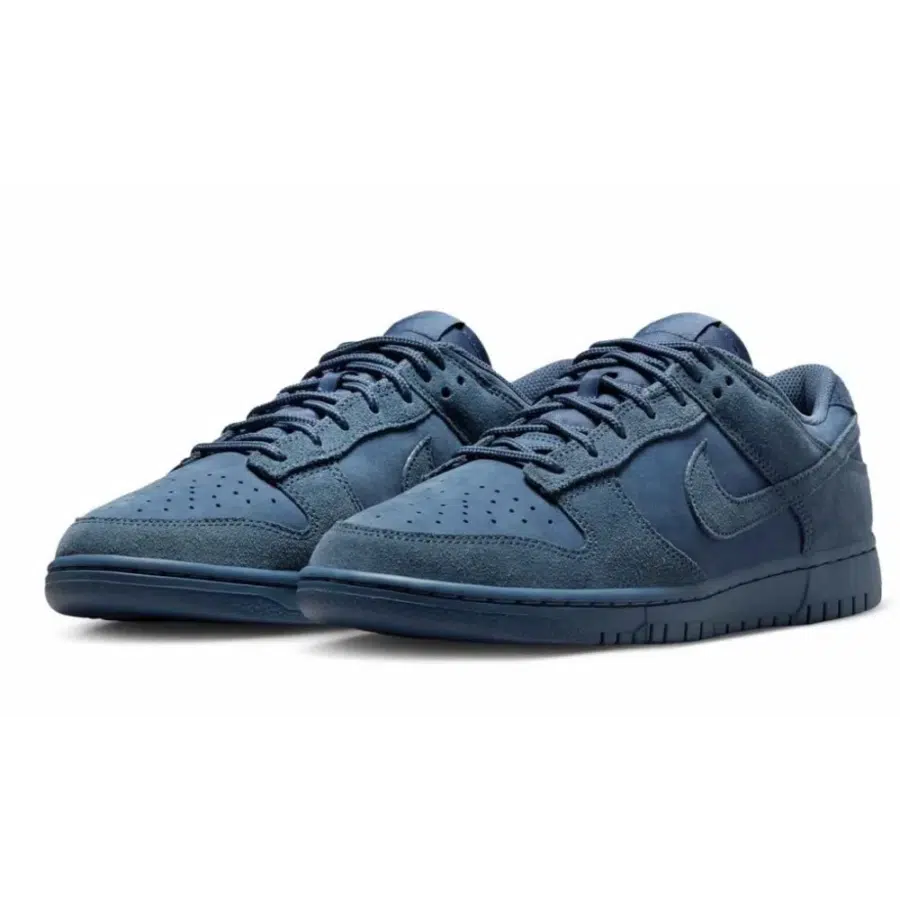 La Nike Dunk Low « Diffused Blue » est une chaussure monochrome et minimaliste, qui se distingue par une base en cuir/nubuck blanc mêlée à des parties en daim bleu usé (Diffused Blue). Cette version, lancée à la fin de 2025, présente un Swoosh, des lacets et une semelle coordonnés, procurant une allure contemporaine et polyvalente.