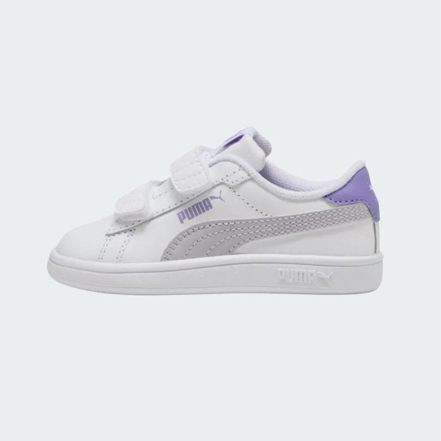 Les Puma Smash 3.0 Leather V Inf sont des chaussures de sport pour les tout-petits au design sobre, tirées d’un modèle classique remis au goût du jour. Avec une fixation en velcro pour une mise en place aisée, une semelle intérieure SoftFoam agréable et douillette, ainsi qu’une tige en cuir avec une semelle extérieure en gomme, elles garantissent un soutien et un confort optimal pour les premiers pas.