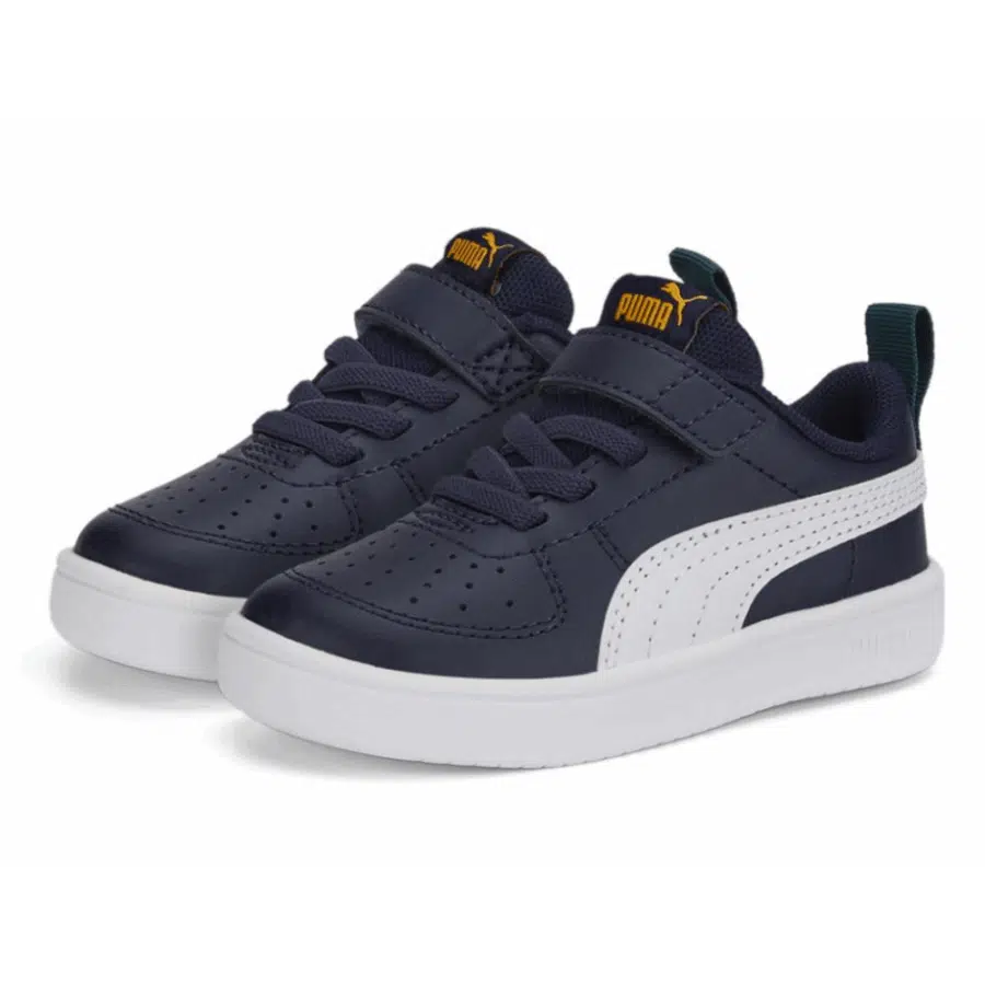 Les chaussures Puma Rickie AC PS, dotées d’une fermeture à scratch, sont conçues pour les enfants et combinent confort, praticité et allure classique. Proposées en coloris blanc, noir et orange, ces chaussures sont fabriquées à partir de cuir écologique et de mesh. Elles sont parfaites pour une utilisation quotidienne grâce à leur semelle extérieure qui garantit une excellente traction.
