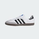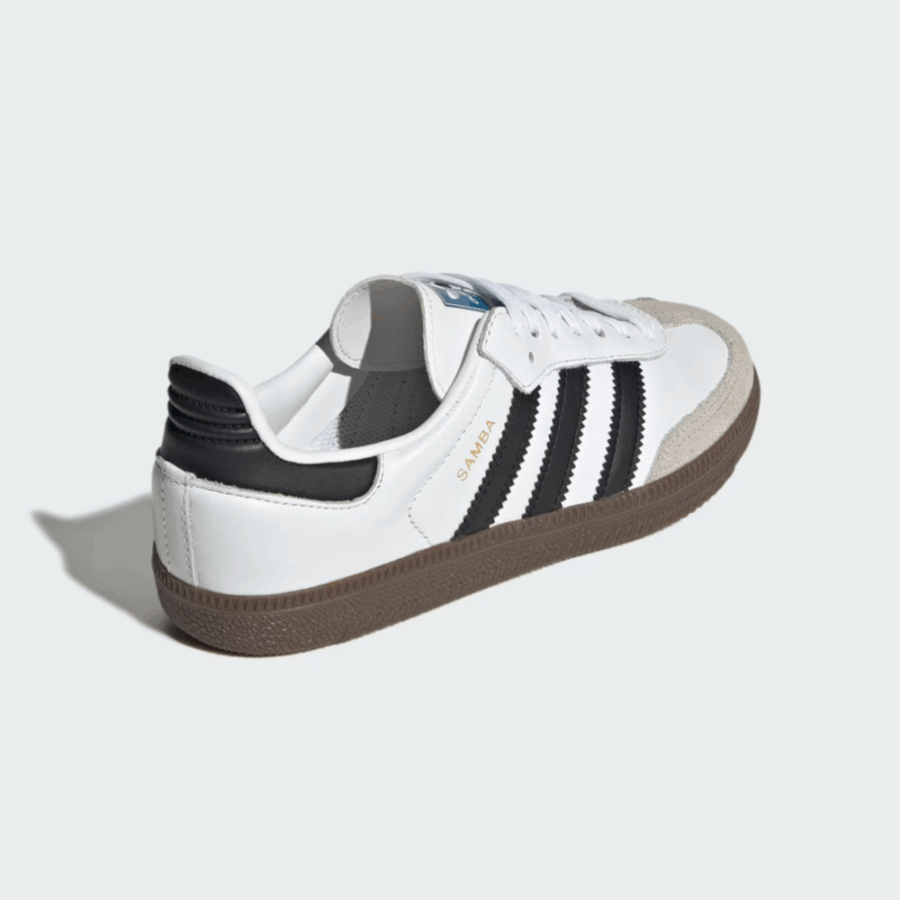Pour un style quotidien, une véritable chaussure Samba. Si tu faisais un saut dans les années 1960, tu verrais des footballeurs professionnels qui portent des adidas Samba, tout comme ce modèle junior. À quelques exceptions près.