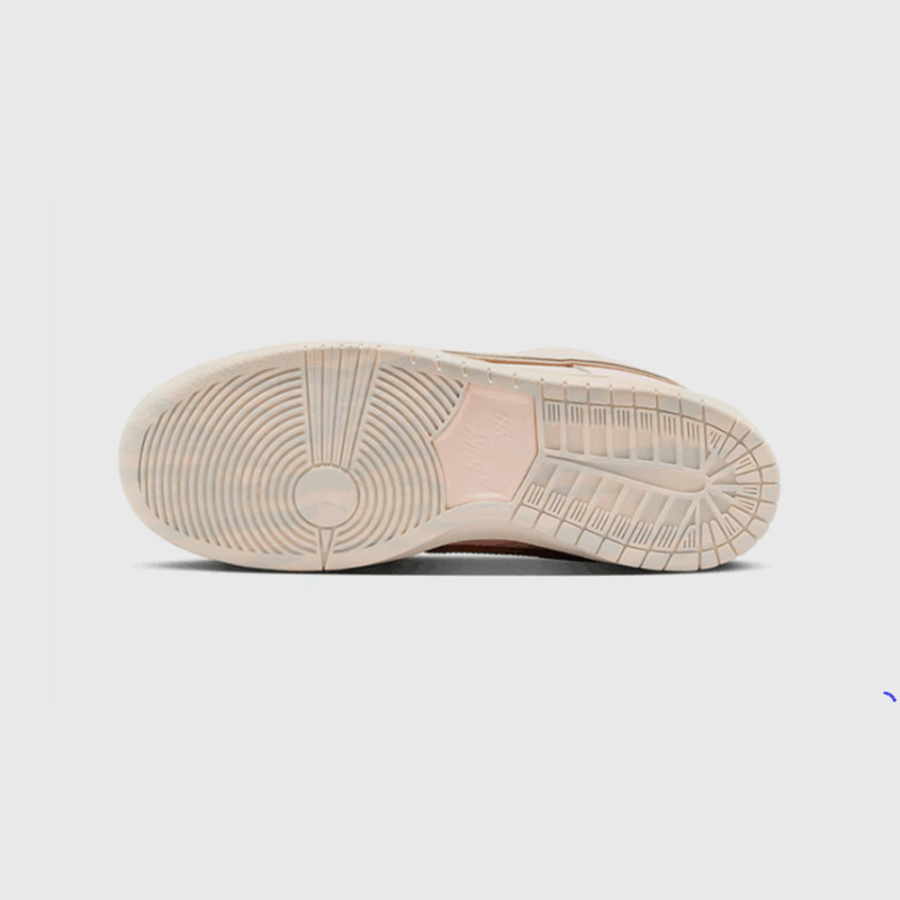 La Nike SB Dunk Low Trocadéro Gardens est une paire de chaussures de skate qui arbore une palette de couleurs chaleureuses : Amber Brown, Pale Ivory, Guava Ice, Hemp, Crimson Tint et Neutral Olive.