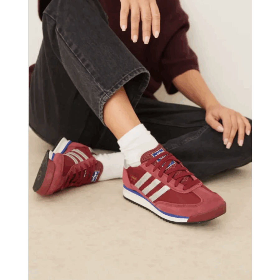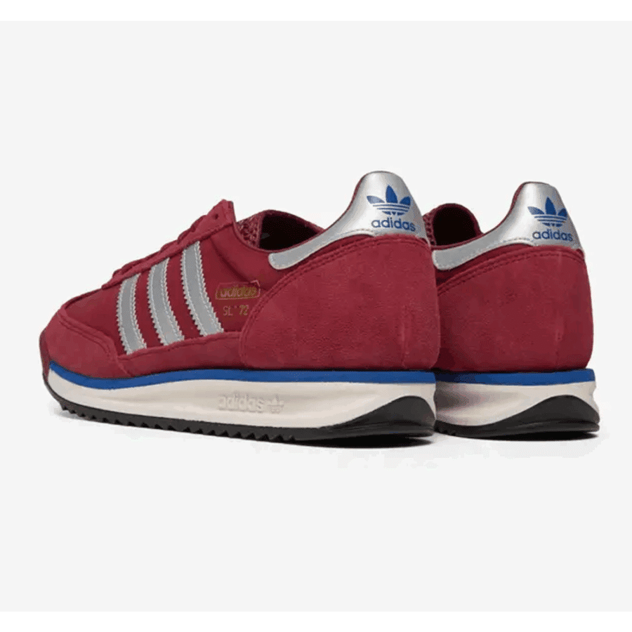 Chaussures adidas SL 72 RS en teinte bordeaux (Noble Maroon/Ftwr White/Preloved Red). C’est une sneaker orientée vers le style de vie, inspirée par les archives de course, dotée d’une tige en nylon et de détails en daim, d’une semelle intermédiaire qui absorbe les chocs et d’une semelle extérieure en caoutchouc. Ce modèle classique est réimprimé avec une allure vintage.