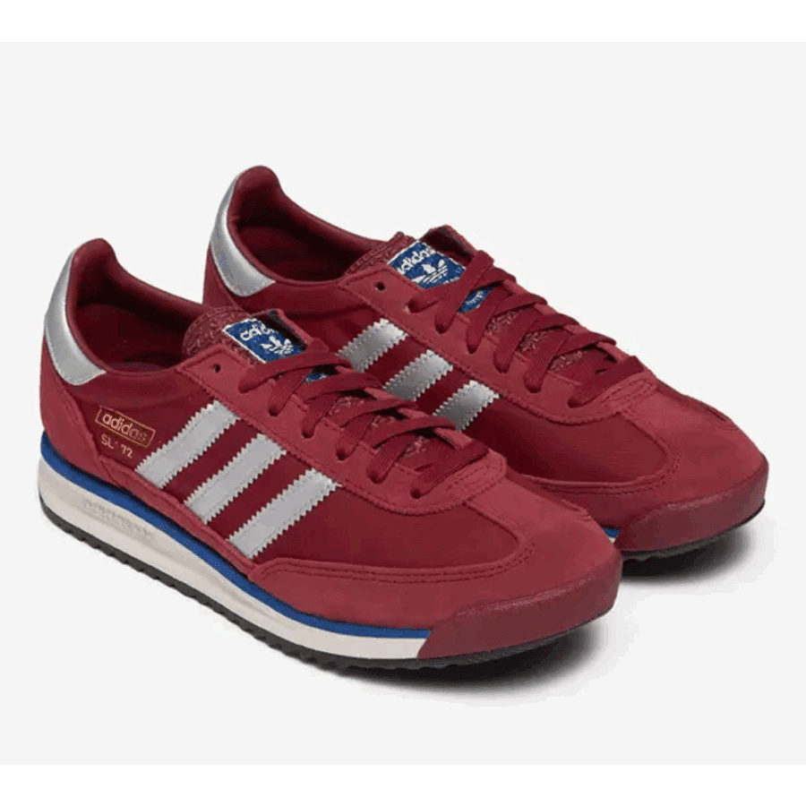 Chaussures adidas SL 72 RS en teinte bordeaux (Noble Maroon/Ftwr White/Preloved Red). C’est une sneaker orientée vers le style de vie, inspirée par les archives de course, dotée d’une tige en nylon et de détails en daim, d’une semelle intermédiaire qui absorbe les chocs et d’une semelle extérieure en caoutchouc. Ce modèle classique est réimprimé avec une allure vintage.