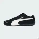La Puma Speedcat OG est une chaussure de sport traditionnelle et rétro, influencée par le monde de la course automobile. Son esthétique minimaliste combine un cuir velours noir à des accents blancs, procurant une harmonie idéale entre élégance, aisance et adaptabilité pour un usage au quotidien. Grâce à son profil mince et sa semelle souple, cette chaussure se révèle être légère et parfaitement adaptée pour un style à la fois décontracté et urbain.