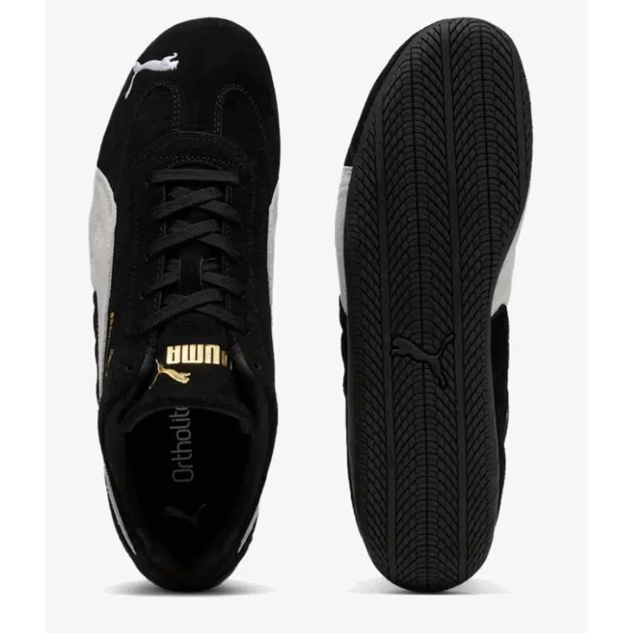 La Puma Speedcat OG est une chaussure de sport traditionnelle et rétro, influencée par le monde de la course automobile. Son esthétique minimaliste combine un cuir velours noir à des accents blancs, procurant une harmonie idéale entre élégance, aisance et adaptabilité pour un usage au quotidien. Grâce à son profil mince et sa semelle souple, cette chaussure se révèle être légère et parfaitement adaptée pour un style à la fois décontracté et urbain.
