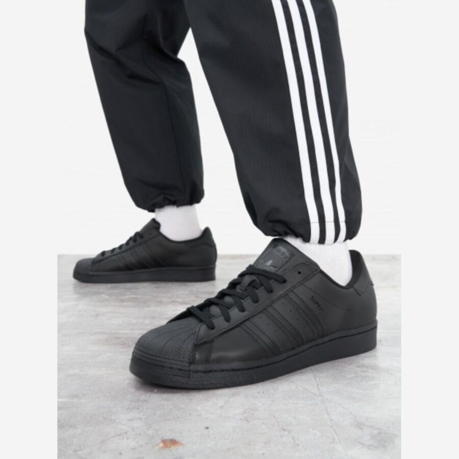 La légendaire Superstar en cuir a révolutionné les règles le jeu dès son apparition. Avec ses trois bandes crénelées, son emblématique bout en forme de coquillage et son emblème encadré, elle demeure une véritable Original.
