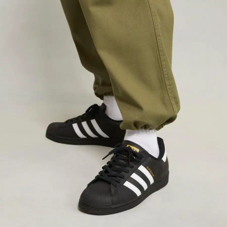 Les Superstar noires à trois bandes blanches se distinguent par leur design iconique et leur confort optimal. Polyvalentes, elles s’adaptent parfaitement à un style urbain et décontracté, alliant confort et allure légendaire.