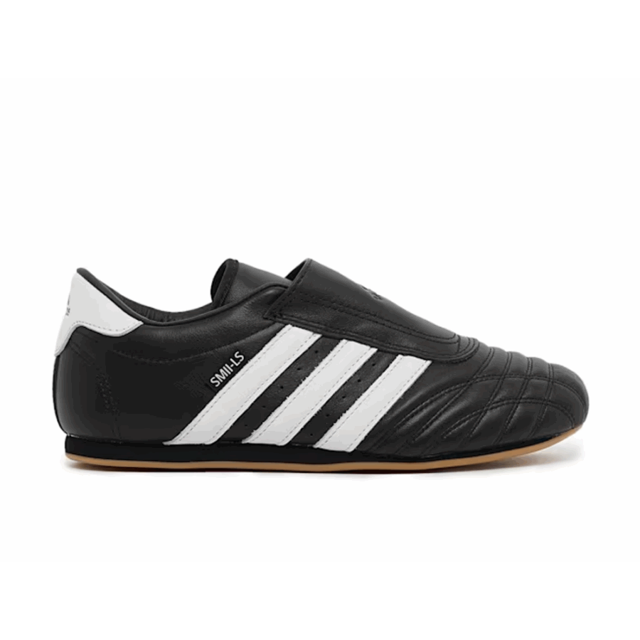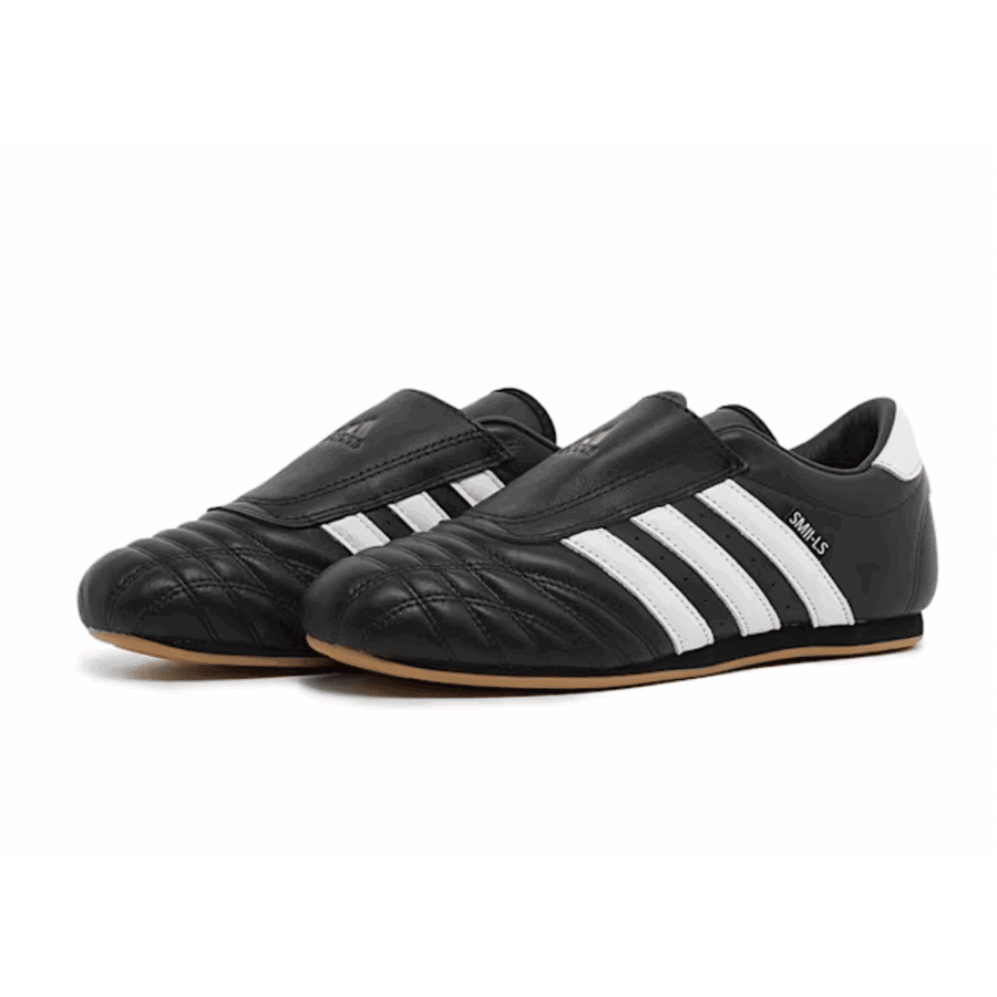 Baskets épurées pour femme en teinte noire, influencées par le style des années 2000. Ce modèle « slip-on » (sans lacets) a une silhouette basse profilée, confectionnée en cuir, parfaite pour un style à la fois décontracté et technique. Elle se distingue par une semelle en caoutchouc mince et un design minimaliste.