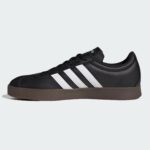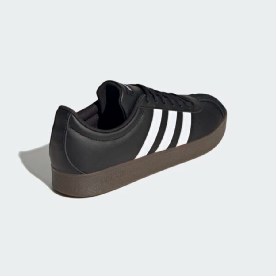 Shoe VL Court Base Une paire de sneakers bicolores blanche et noire confortablepour tous les jours, fabriquée en partie à partir de matériaux recyclés. Une tige souple est doublée pour un confort accru et est posée sur une semelle extérieure en caoutchouc standard. La tige est fabriquée à partir de matériaux recyclés, avec un taux minimum de 50 %.