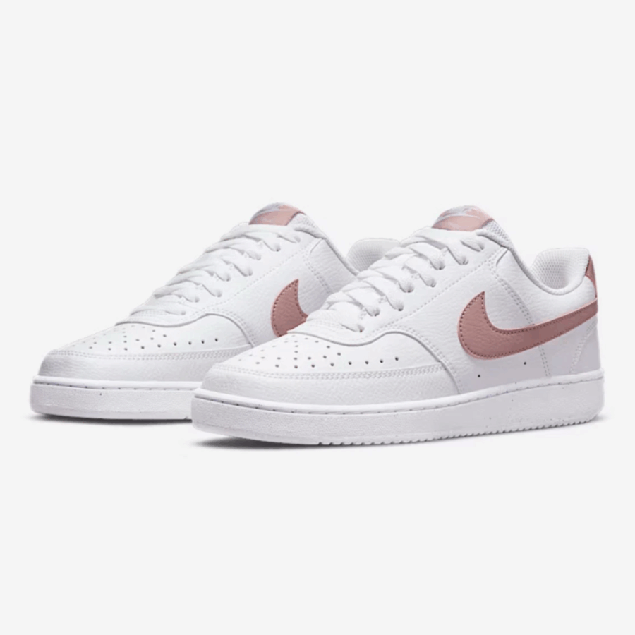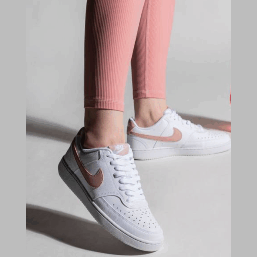 Les Court Vision Blanc & Rose se distinguent par leur esthétique classique, dotée d’une tige blanche en cuir artificiel de qualité supérieure. Elles sont ornées d’accents rose sur le logo Nike et d’autres éléments, apportant une nuance de couleur et de raffinement à leur allure générale. Ces chaussures de sport possèdent une semelle externe en caoutchouc assurant une accroche sécurisée, les rendant idéales pour la marche et les activités peu intenses. Elles possèdent aussi une semelle intérieure rembourrée pour un confort accru.
