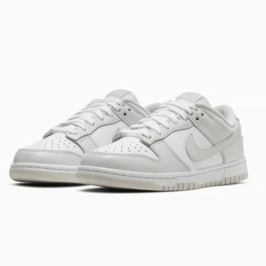 La sneaker pour femmes Nike Dunk Low WMNS « Photon Dust » présente un design discret et polyvalent, associant une tige en cuir blanc à des inserts gris pâle. Avec une semelle en caoutchouc à deux couleurs et des éléments typiques de Nike, elle combine confort et allure citadine, parfaite pour un port quotidien.